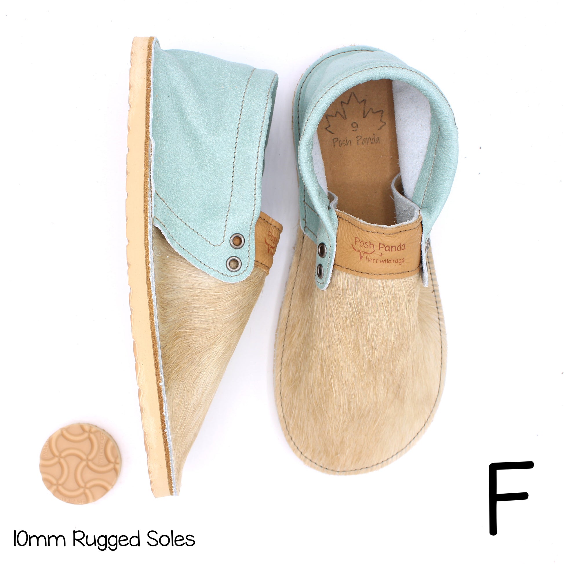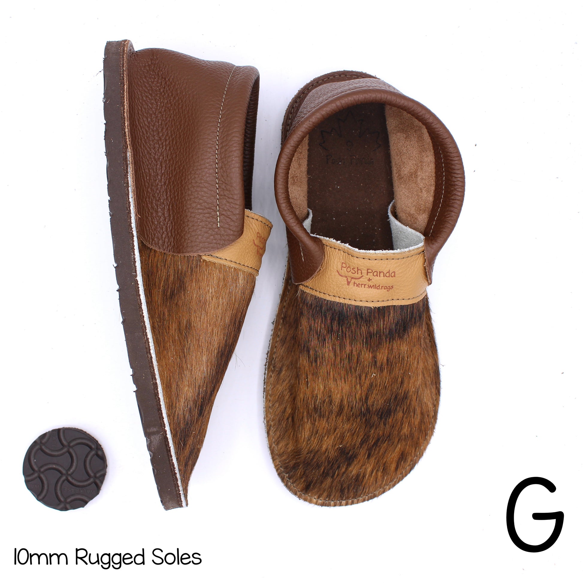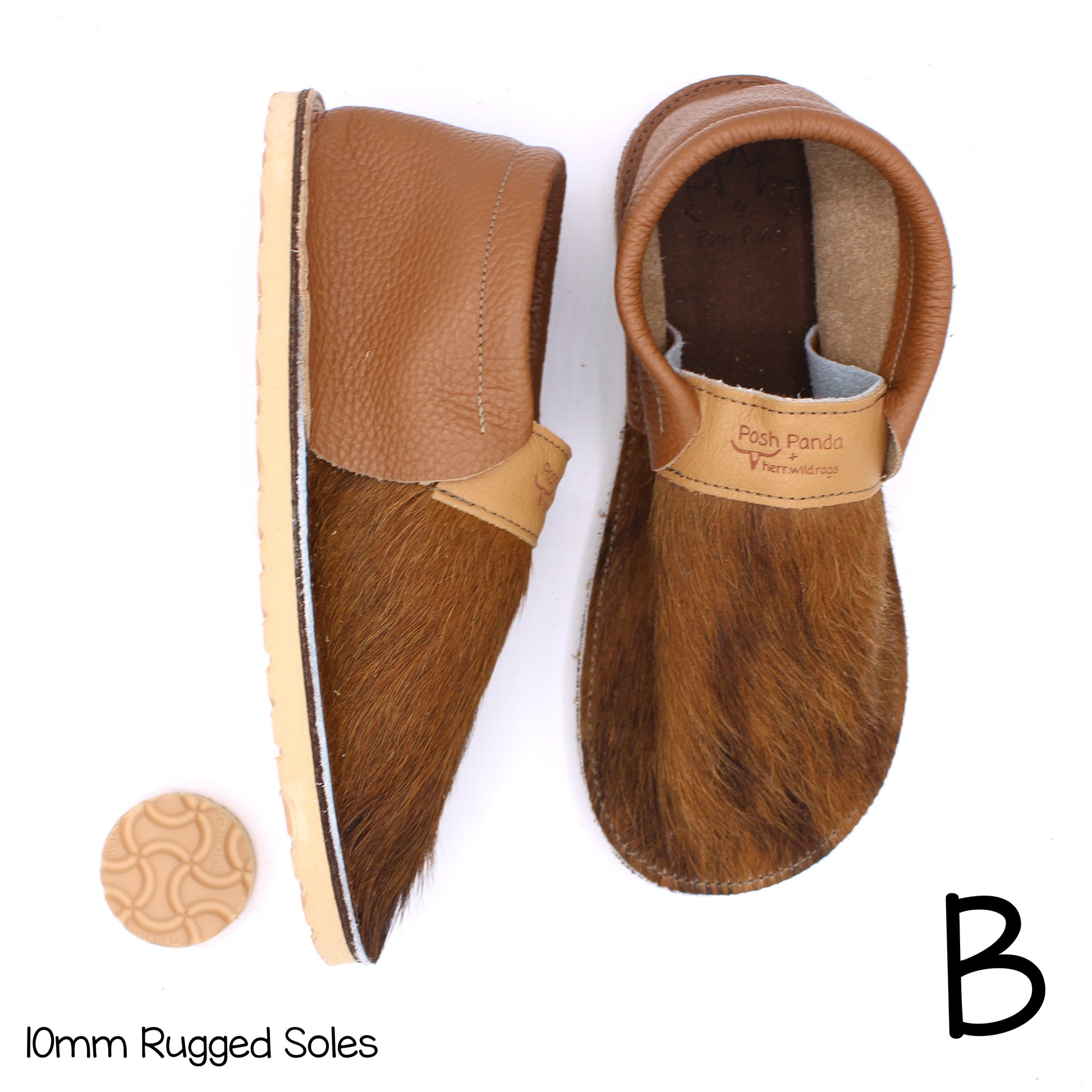 Adult RUGGED SOLE Mocs are made with leather insoles as well as an added base layer of 10mm Foam-Like rubber for extra grip and support. (Same Base Rubber As A Pair Of Birkenstocks!)